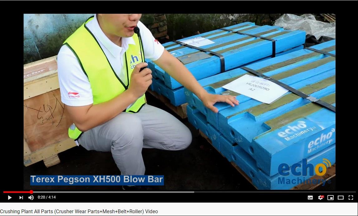 Crushing Plant All Parts (Crusher Wear Parts+Mesh+Belt+Roller) Video --Echo Machinery Echo Machinery would like to share with you our recently finished Terex crusher wear parts,screen mesh,conveyor belt and roller goods.
