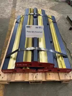 We make precisely machining on the fitting surface, so it can be fitted into rotor tightenly. Our painted red color means high chrome with ceramic insterts blow bar, which are used to crush hard natural stone, granite, asphalt etc. The point is that our ceramic inserts blow bar has 3 times longer life than normal materials.