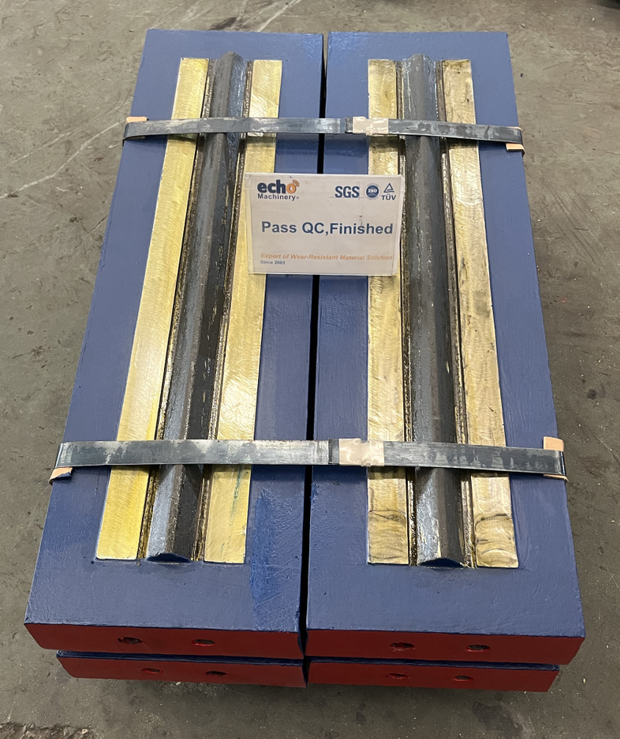 Available material of our blow bar is high chrome or martensitic with or without ceramic insert. We can also produce impact plate for Metso impact crusher.