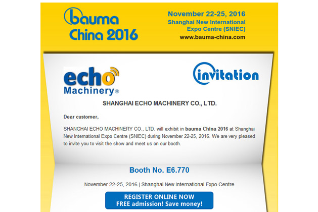 2016 Shanghai Bauma Fair Invitation From Echo Machinery
