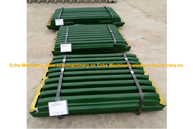 Echo Machinery supports Gator jaw plates for Gator PE0204,PE0610,PE1016PE1624,PE2030, PE2436,PEC3045,PE3042,PE3242,PE3648,PE4860,PEX1030,PEX1039,PEX1047 etc models with Mn13Cr2,Mn14Cr2,Mn18Cr2,Mn22Cr2,Mn24Cr2 manganese materials for crushing limestone,ironstone,basalt,granite,cobble,gold mine etc applications.