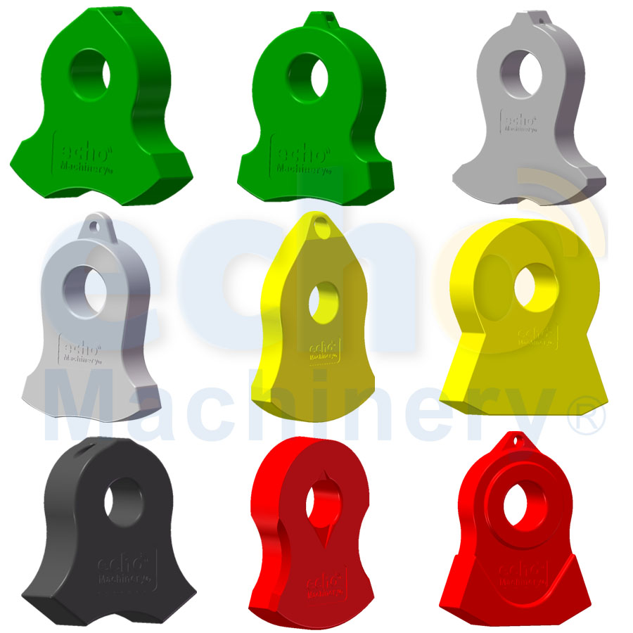 ECHO5 (Red) - DHT Alloy with Dual Hardness: Our top-of-the-line solution for pre-shredded car scrap, medium-duty ferrous, and non-ferrous materials. Expect exceptional performance, up to 2.5-5.5 times that of our ECHO1 hammer.